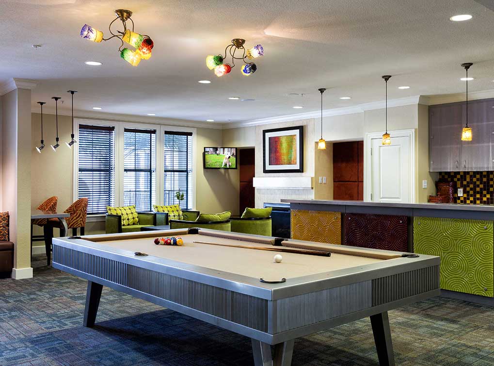 Residents of AMLI’s Allen Parkway apartments enjoy two resort-style swimming pools, a yoga studio, a 24-hour fitness center, a media room with sports bar, a conference center, and a billiards room. Our pet-friendly Buffalo Bayou apartments also offer covered garage parking and a bark park dog run.