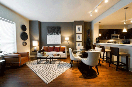 AMLI River Oaks apartment homes offer a contemporary urban lifestyle on the edge of Houston’s trendy River Oaks and Montrose neighborhoods. AMLI River Oaks is within steps of eclectic boutiques, restaurants, and galleries and minutes away from the Buffalo Bayou Park and both downtown and midtown Houston. Boasting exceptional amenities that include a resort-style swimming pool, fully equipped fitness club, resident media lounge with Wi-Fi, private screening room with 80″ HDTV, resident lounge with billiards and kitchen, courtyard with double-sided fireplace, outdoor grilling and dining areas. AMLI River Oaks one and two bedroom floor plans feature dramatic living spaces with high ceilings and open gourmet kitchens with granite counter tops, stainless steel appliances, wood-style flooring in living and dining areas, and luxurious bathrooms with stone counter tops, travertine flooring and oversized soaking tubs.PACKAGE FEATURES