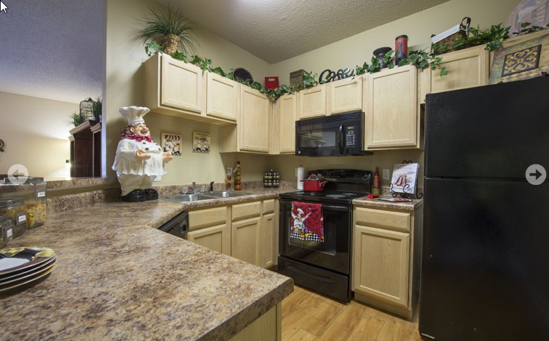 - Gourmet Kitchens with Granite Style Counters and Black-on-Black Appliances