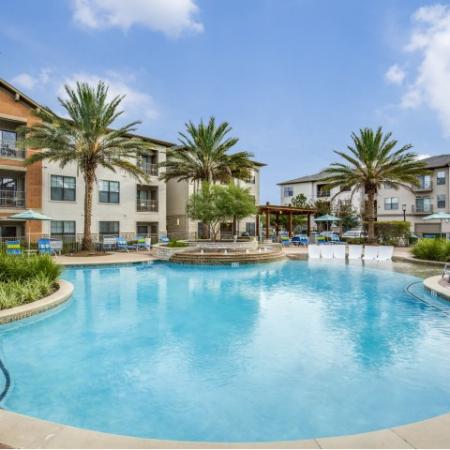 Outside, breathe in the fresh air while enjoying the scenic beauty of miles of winding walking trails. Step out and into Restaurant Row at Hughes Landing, or enjoy a concert at The Pavilion. Just outside your door, an aquamarine swimming pool beckons you in with fountains and in-water lounge chairs. A workout is never out of the question with our onsite fitness center complete with free weights and cardio equipment.