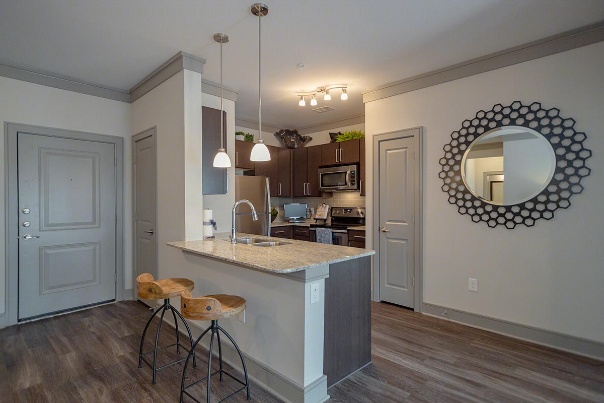 Stratus Cinco Ranch offers a wide variety of community and interior features crafted especially for you. Enjoy a relaxing day by the saltwater pool with water fall feature; Get fit in one of the many workout rooms offering free weights, cardio, spin, and yoga; Catch a movie in the indoor theater equipped with comfy, recliner stadium seating and theater surround sound. The community features offer the best of suburban and urban living while the furnished apartments boast space, class, and style with granite countertops, subway tile backsplash with glass accent, and stainless appliance package.