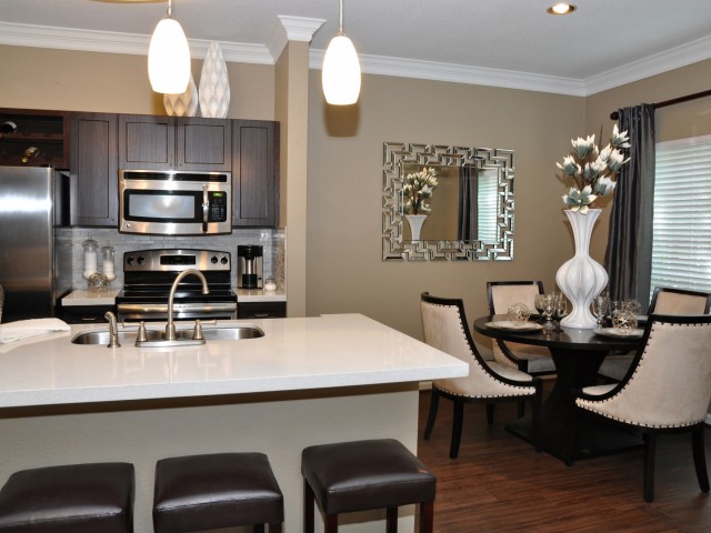 The gated community of The Grand on Memorial, located in Houston, TX, offers one and two-bedroom furnished apartment homes conveniently situated between the I-10 and Beltway 8 Tollway, just a short distance from the Energy Corridor and minutes from downtown Houston. The corporate apartment homes are within a easy walking distance to Terry Hershey Park and minutes to George Bush Park, Bear Creek Park, The Lakeside Country Club and City Centre. Corporate Suites residents enjoy on-site amenities such as, a 24-hour cardio fitness center, poolside lounge with grilling areas and fireplace, and the poolside Promenade internet cafe which includes Mac/PC stations and free Wi-Fi.