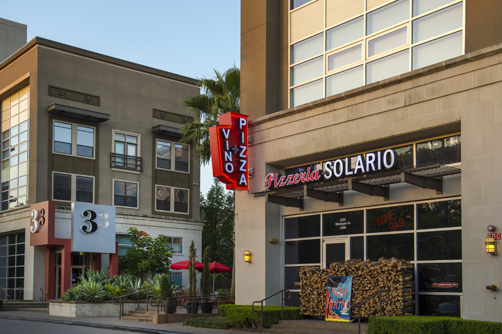 Their unparalleled amenities include outdoor pools, relaxing lounge areas, and a freshly updated fitness center with cardio room and huge windows for natural light. You’ll also find an artisan wine bar and café, plus the best pizza in town on-site at Pizzeria Solario.
